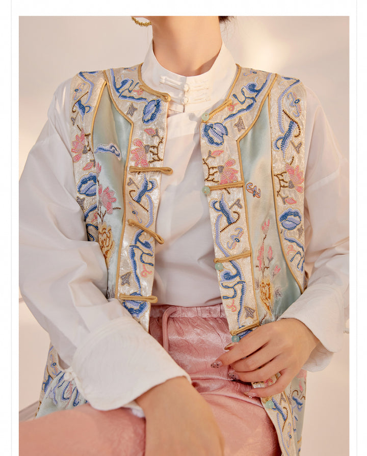 Vintage Chinese Embroidery Acetate Vest