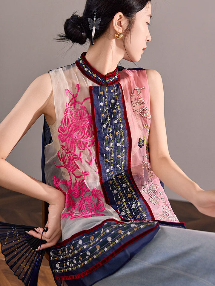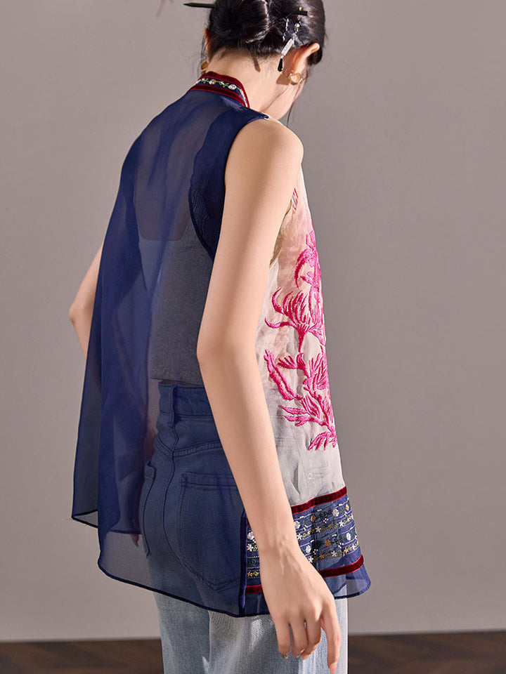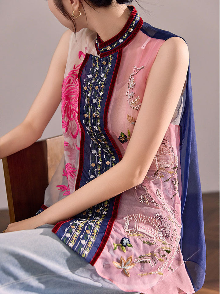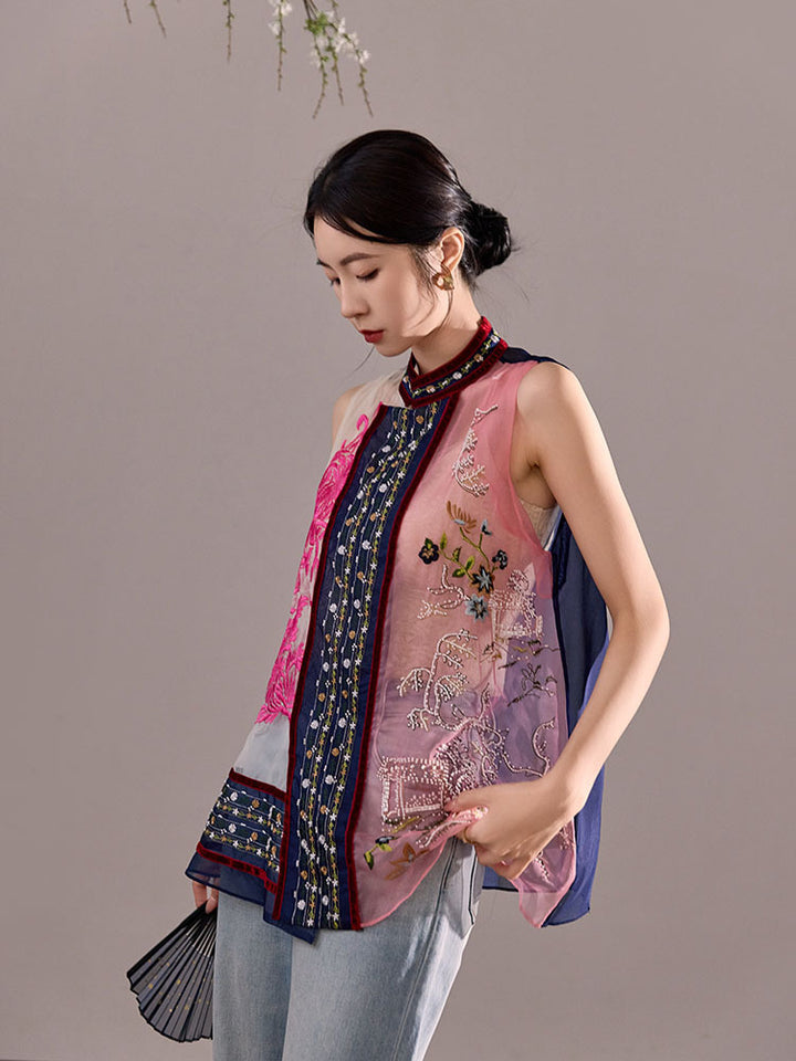 Embroidery Mulberry Silk Waistcoat Tank Top