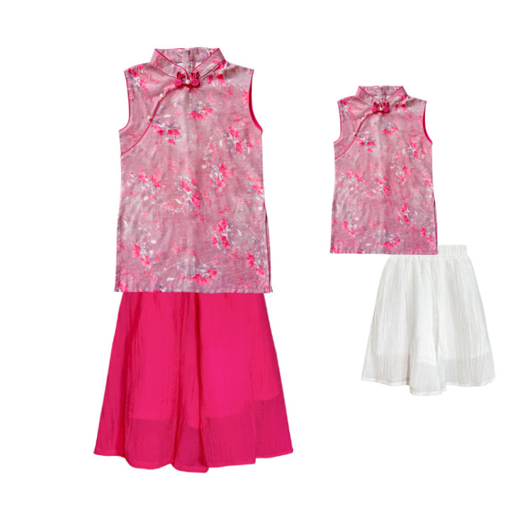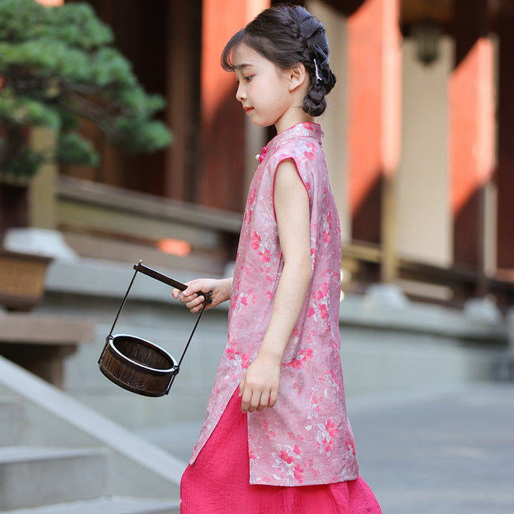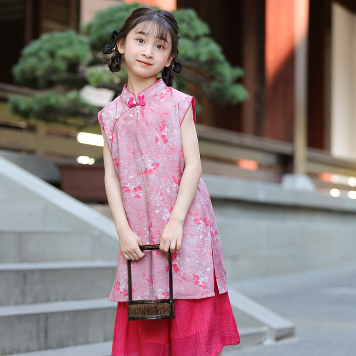 Girls' Cheongsam Two-Piece Tang Suit with Qipao