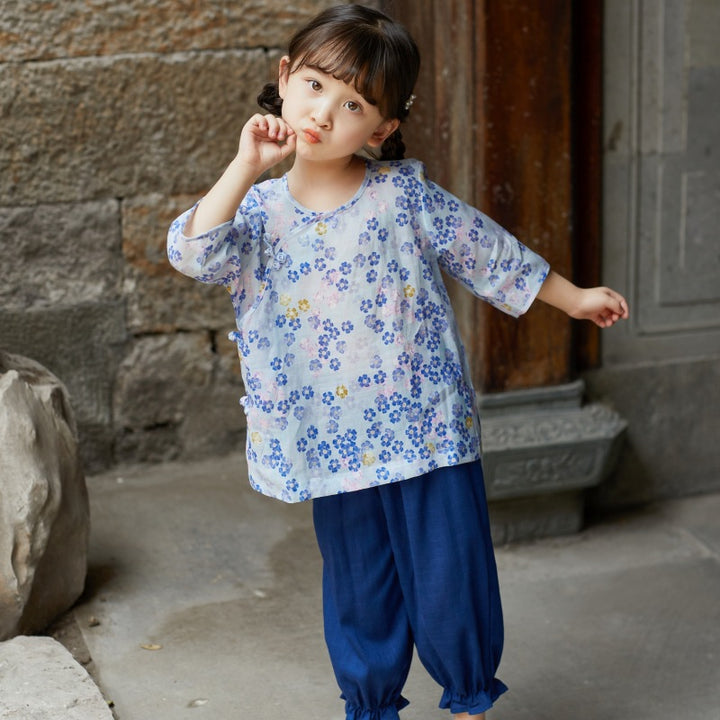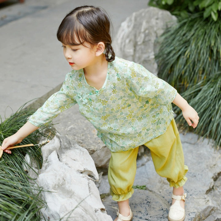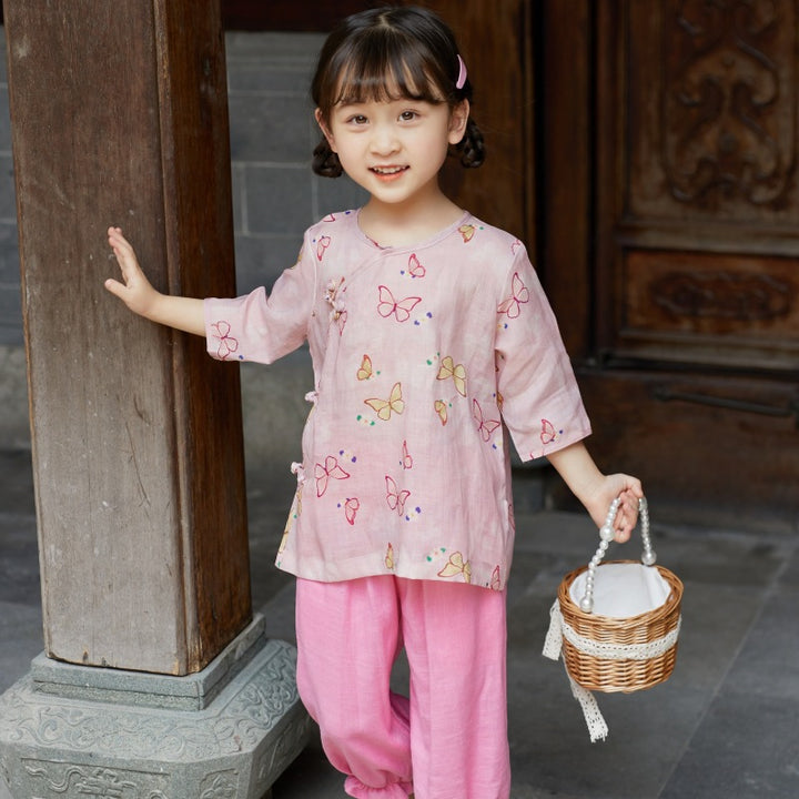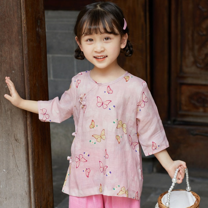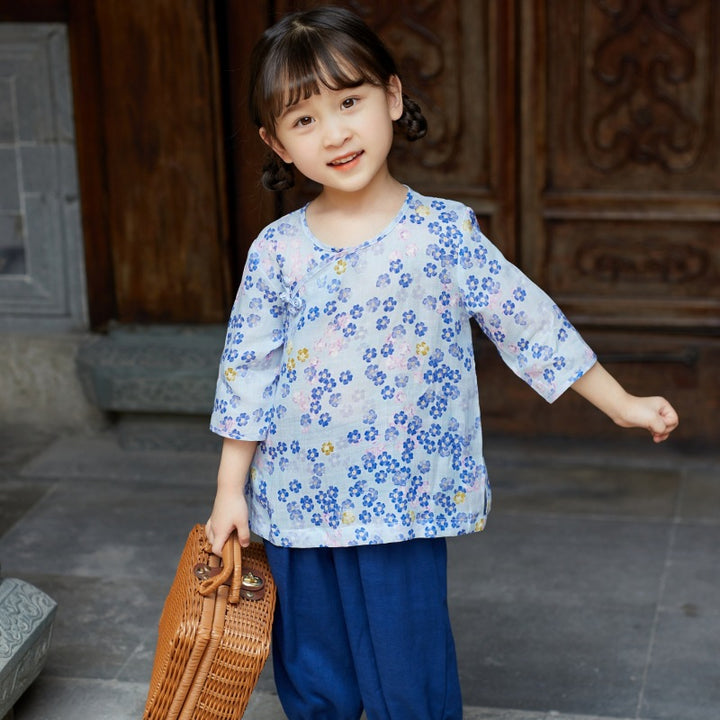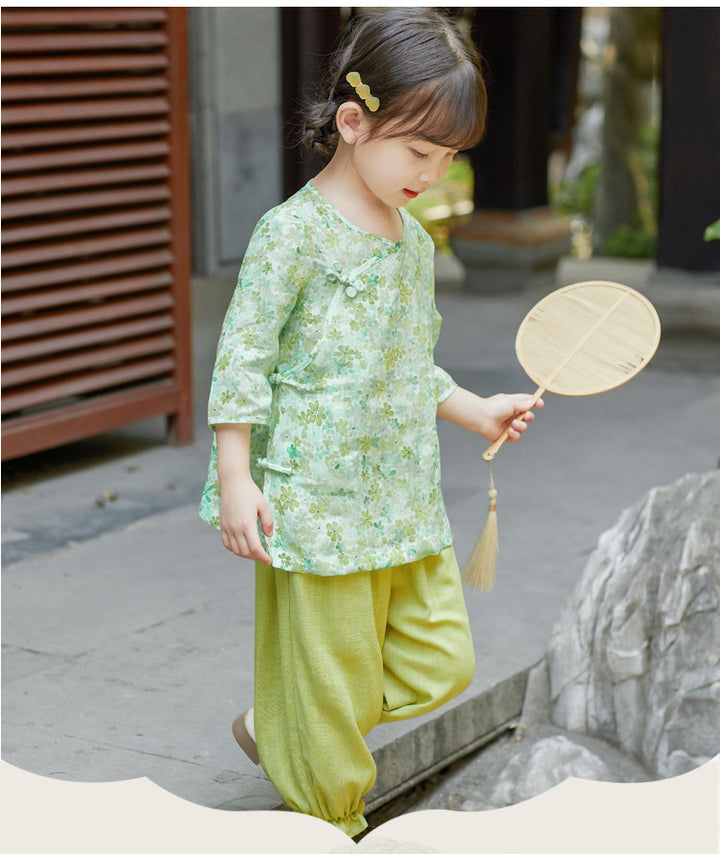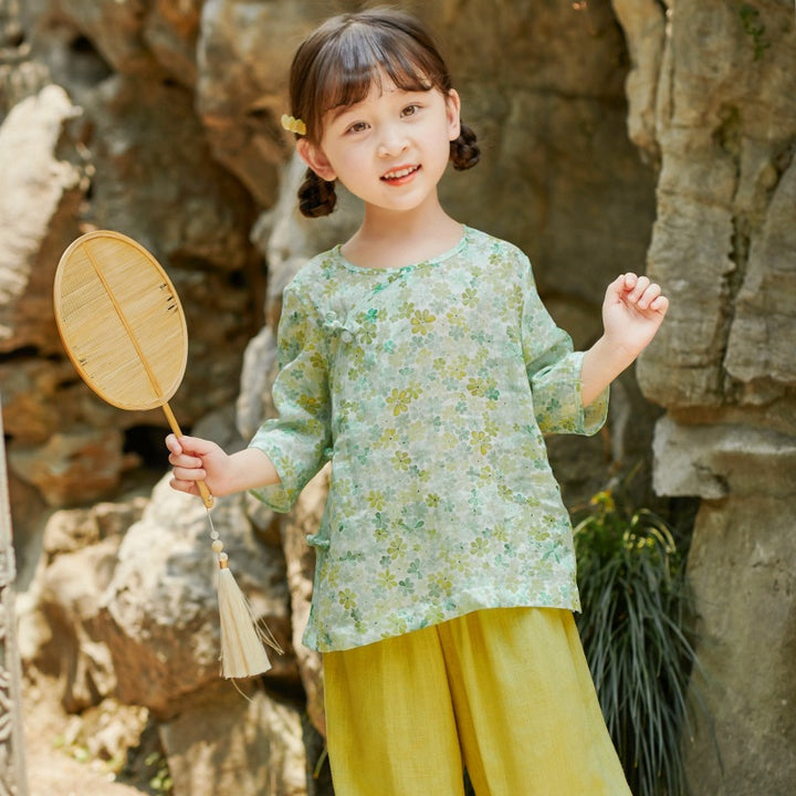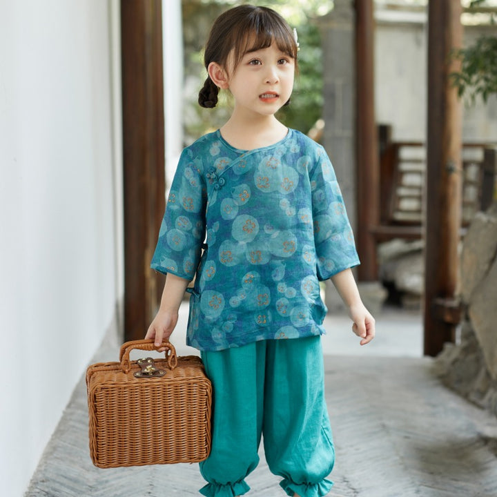 Girl's Hanfu Linen Cotton Chinese Style Two-Piece Tang Suit Girls' Cheongsam