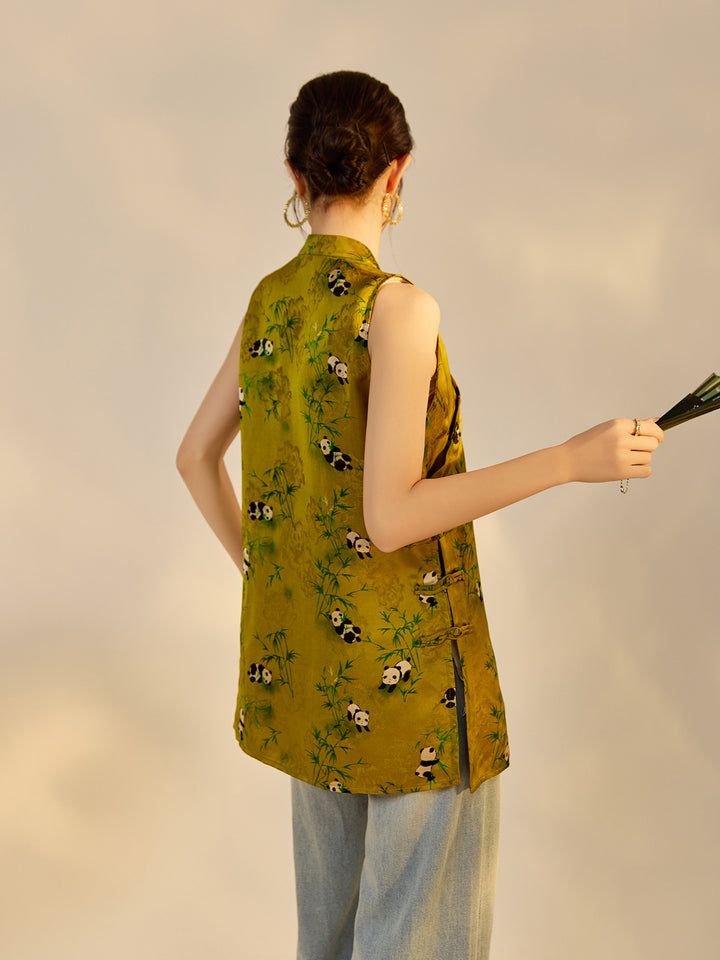 This vintage-inspired Panda with Bamboo Qipao Tank Top features an easy silhouette,