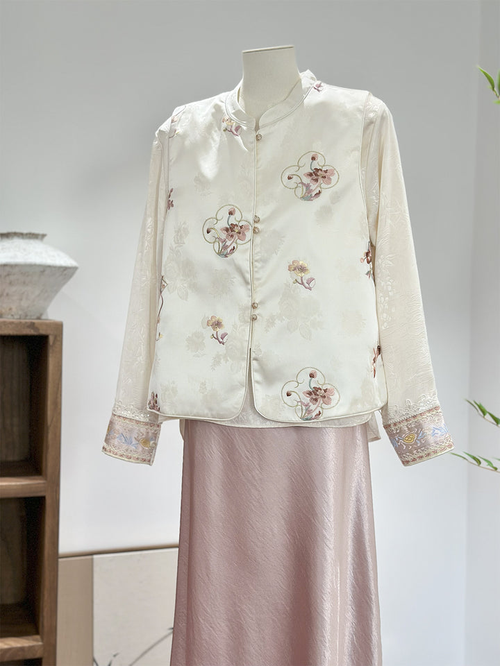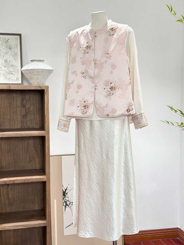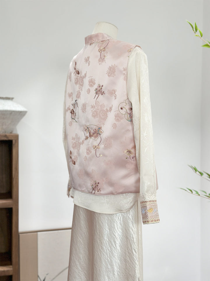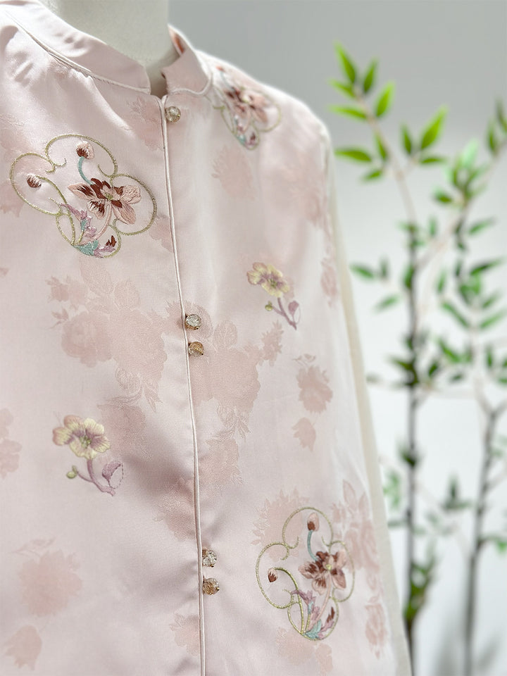 Pink Embroidered Jacquard Waistcoat Sleveless Tank Top